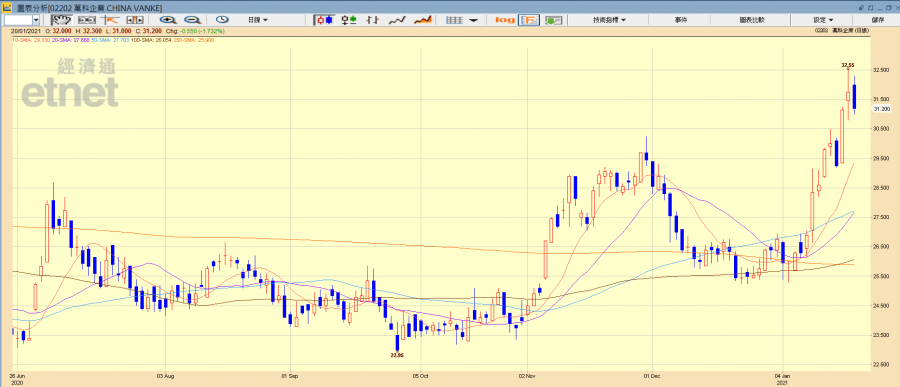 萬科(02202)走勢圖(經濟通HV2系統截圖)