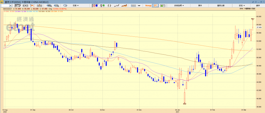 中移動(00941)走勢圖(經濟通HV2系統截圖)