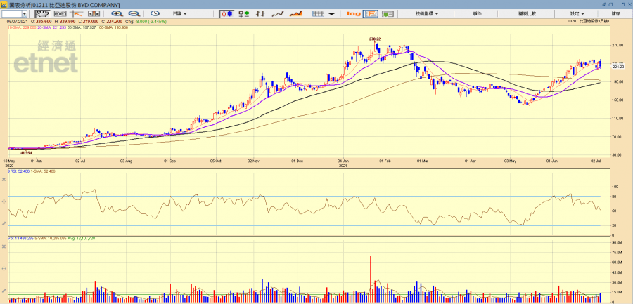 電動車可謂目前在科技界的朝陽行業,而大行的看法亦較為正面。花旗發表研究報告指,比亞迪的6月汽車銷量小幅高於市場預期,重申對公司的「買入」評級及287港元目標價。該行強調,整個新能源汽車板塊重估勢頭良好,而且仍處於早期階段,加上近期廣東新能源汽車補貼政策推出,預計將對比亞迪更有利。