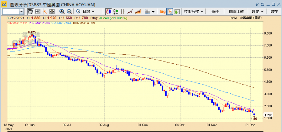 奧園收市跌11.88%收報1.78元,佳兆業則跌8.82%收報0.93元。