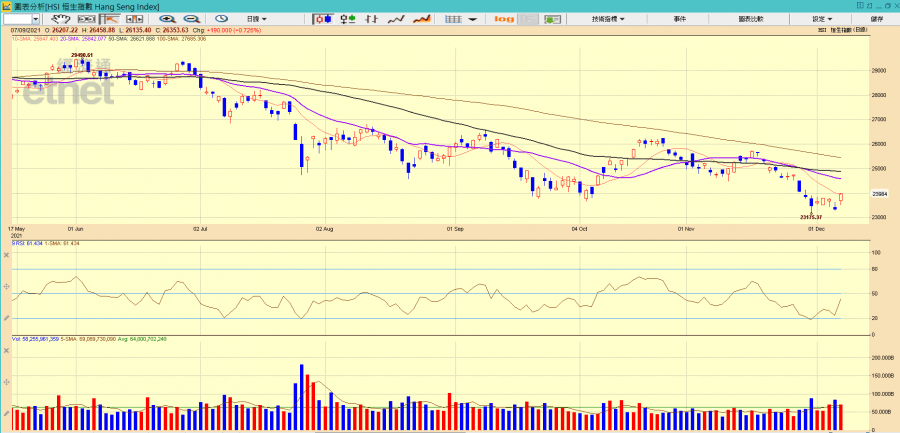 另外,人行宣布於12月15日降準,內銀股早段造好,惟尾段升幅逐步收窄,建行無升跌,工行更微跌0.2%,似乎市場已消化完降準消息,加上本身屬偏向防守性的股票,短期上升空間未必很大。