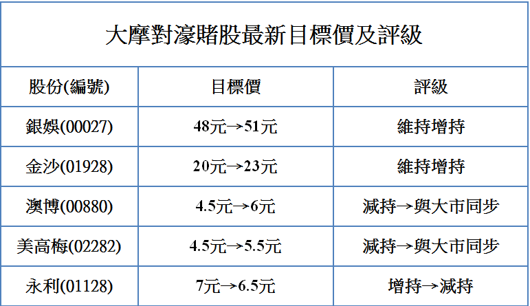 濠賭股獲大摩唱好終見反彈 惟仍受困多項負面因素