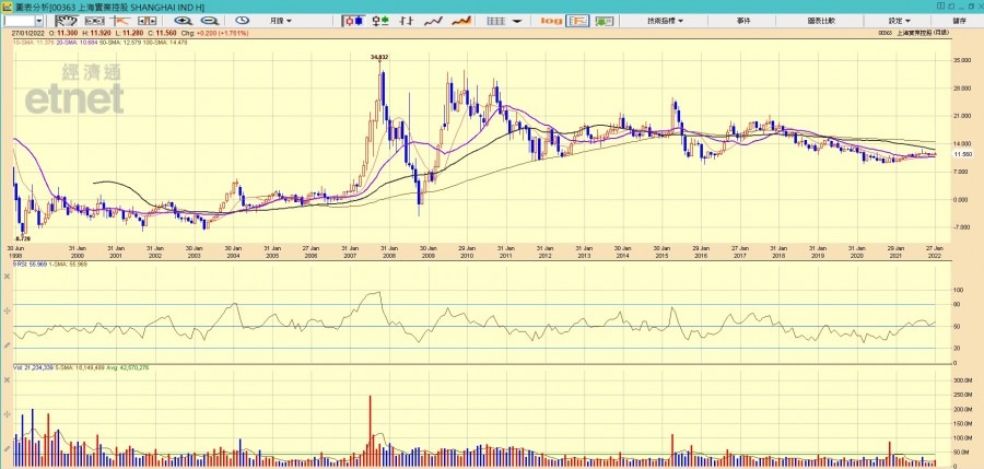 上實股價現時貼近長期橫行區底部,值博率較高。(經濟通HV2系統截圖)