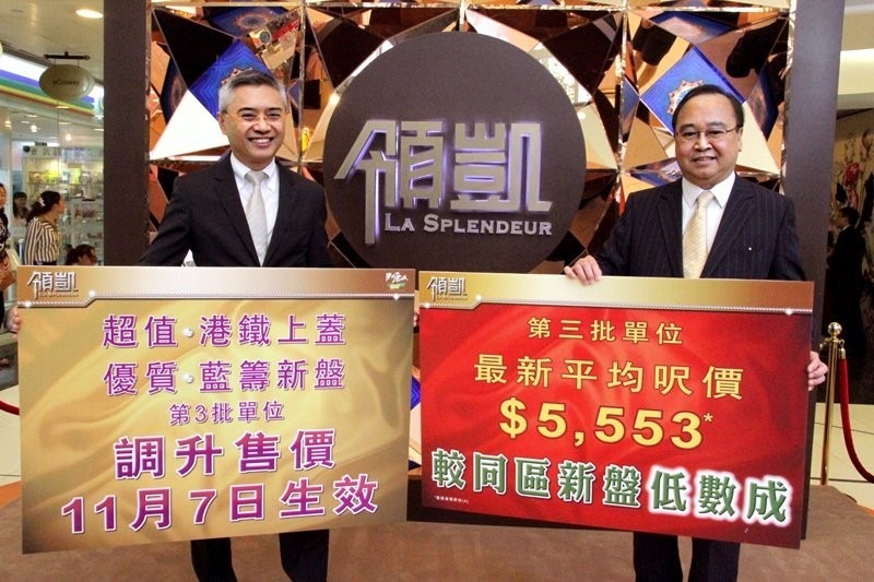 李嘉誠談日出康城環境時曾說過:「(該區)個綠色真係靚,心曠神怡」。圖為當年長實夥南豐發展的區內新盤「領凱」推售 (資料圖片)