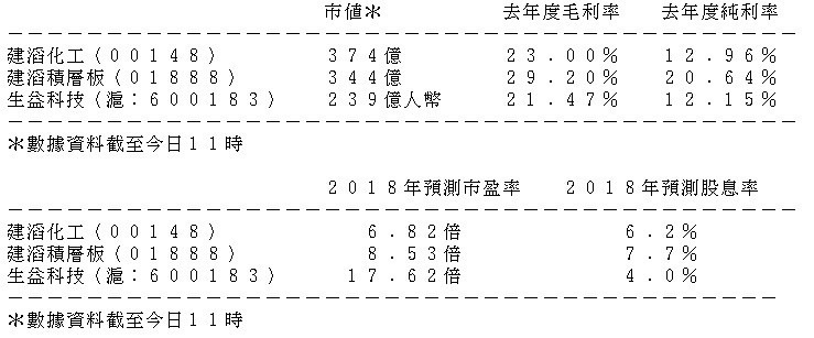 表列建滔系及同業個別數據: