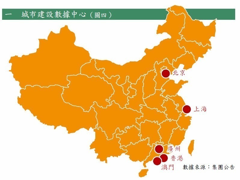 收入節節上升的同時,集團多個投資計劃亦進展順利。上半年位於中信電訊大廈及廣州科學城的雲計算中心分別完成改造及興建,並開始營運,覆蓋全國一線城市的數據中心網絡亦已形成(見圖四),為區內各客戶提供異地災難備份服務。為加強軟件開發等核心競爭力,上半年亦於珠海成立研究中心。大灣區以外,集團通過整合,以新加坡為中心的東南亞地區企業服務單位已初步建立,覆蓋移動、語音及雲服務系統。