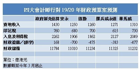 表列四大會計師行對19/20年財政預算案預測