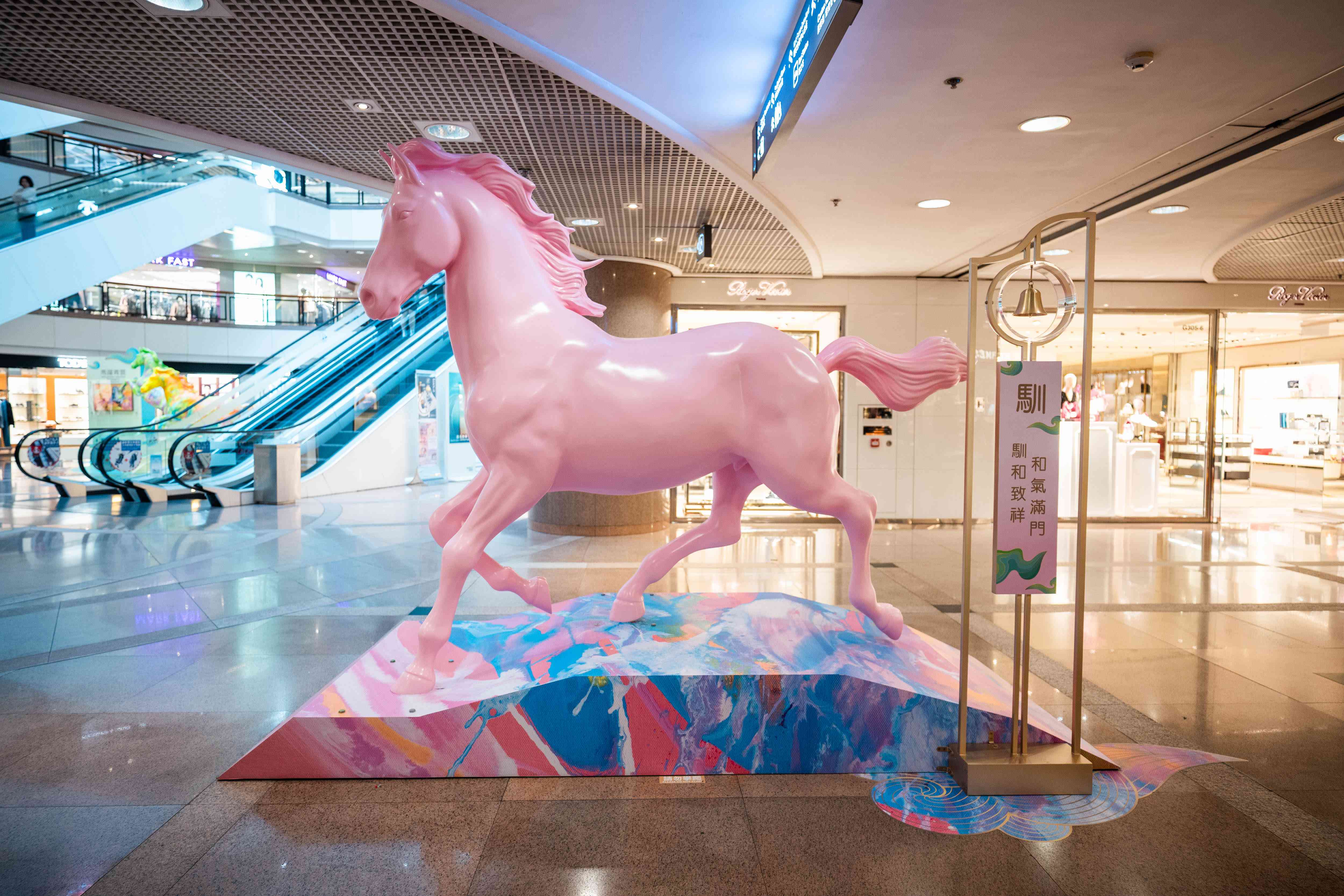此外,Kenneth特意为海港城创作的主题作品《祥驹献瑞》,并于港威商场地下大堂 I 展出。作品融入璀璨金箔与中 国传统吉祥符号,骏马于光芒中蕴含丰沛祝福。
