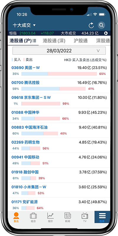 提供详尽即时行情包括第一档买卖价的挂单股数、成交纪录、资金流向、互动即时图表及同行表现等,无需手动,所有资讯将自动更新