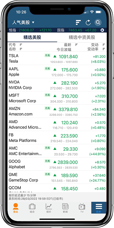 不同投资市场如A股或美股报价、排行、人气股、图表及公司资料汇集在手,更可自订监察表单随时查看
