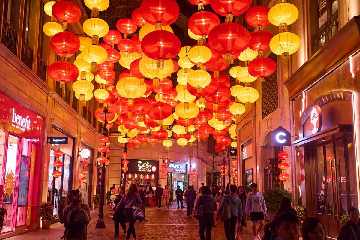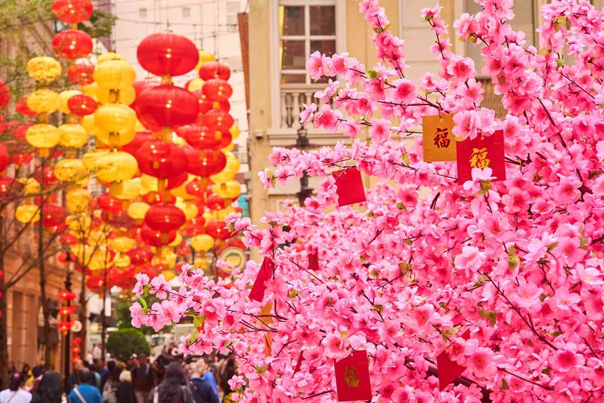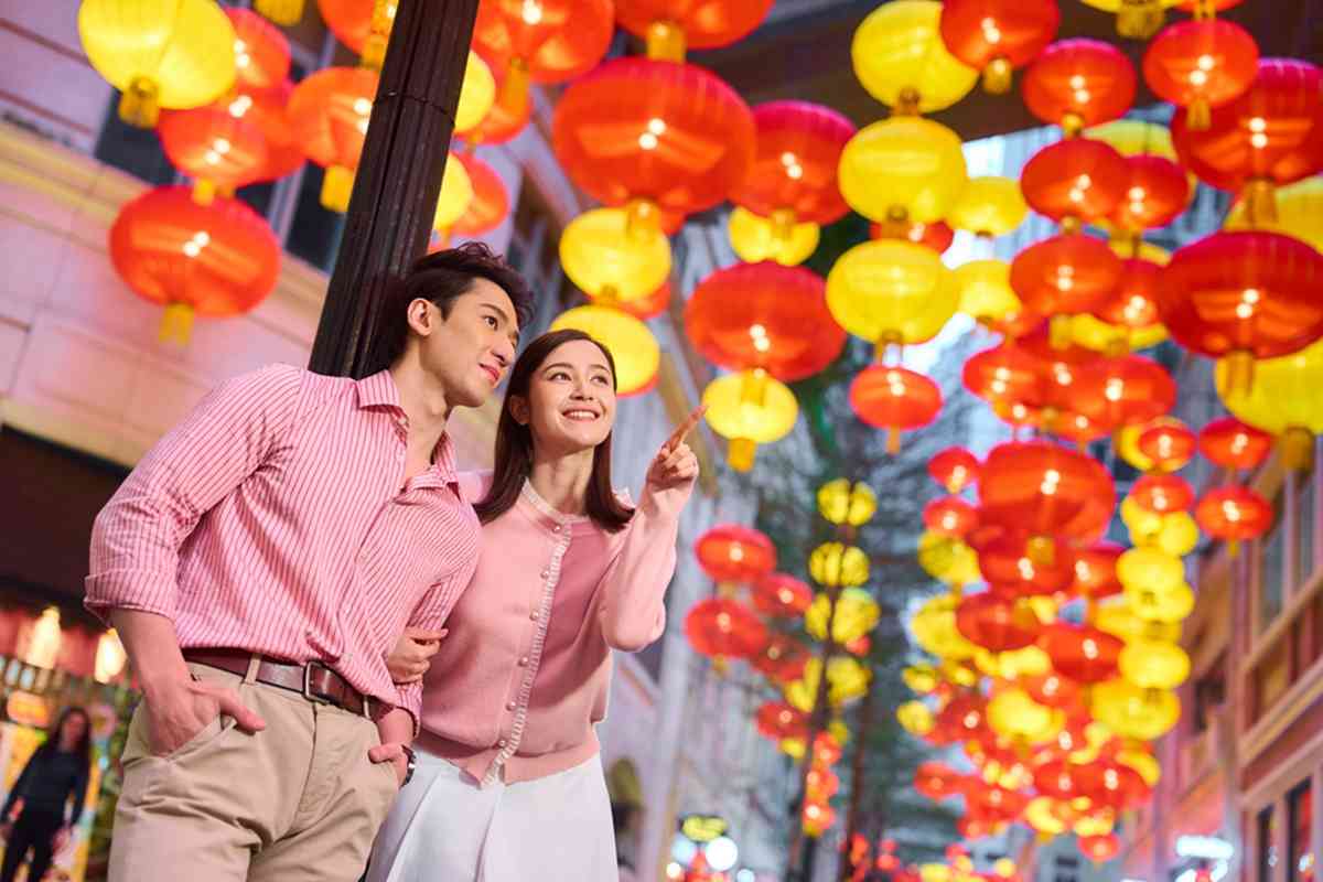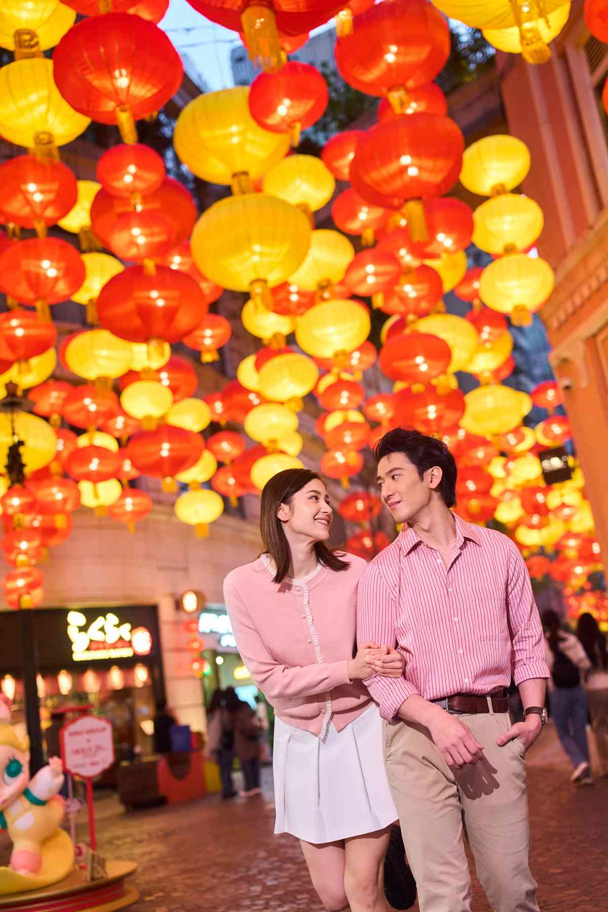 逾800個金紅喜慶燈籠匯聚成華麗燈海,照亮約200米長的林蔭大道,寓意鴻運當頭、闔家團圓。中庭特別設置12棵近3.5米高粉紅桃花樹,築成開運庭院,為情人節及元宵佳節打造溫馨甜蜜的打卡熱點。桃花綻放寓意愛情美滿、好運連連,寄寓情人間的幸福甜蜜與家人間的和睦圓滿,祝願萬家燈火其樂融融,共迎新春佳節。