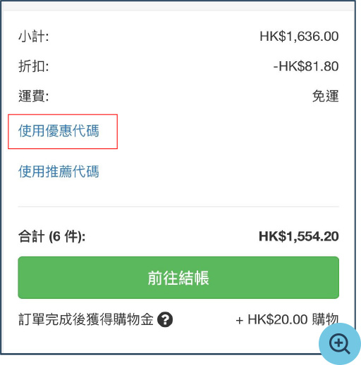 - 顧客必須於網上購物結帳時在「使用優惠代碼」一欄中輸入此優惠代碼方可兌現。