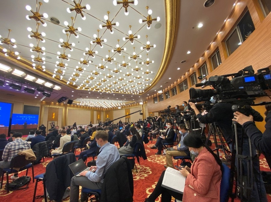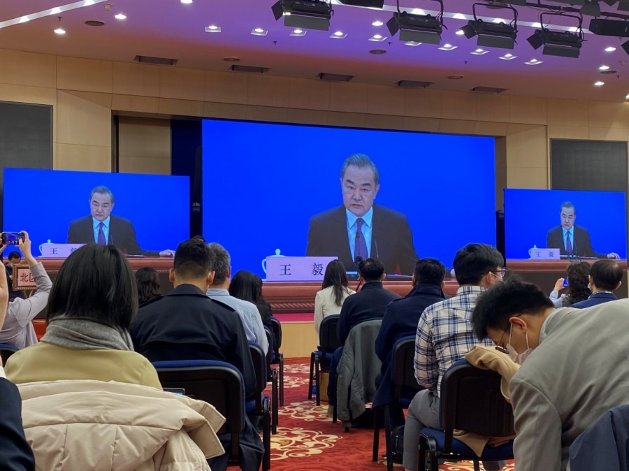 盡管今年全國兩會會期回歸到往常的3月初舉行,會期縮短到一共只有8天。總結去年經驗,大會採取的各項防疫措施均和去年相若,非常嚴格。8日下午3時,是今年全國人大舉行唯一一場部委發布會——外交部記者會,外交部部長王毅在主會場人民大會堂就「中國的外交政策和對外關係」回答中外記者提問,100分鐘內回應了包括中美關係、中印關係、疫苗、香港、台灣、新疆等27個問題。
