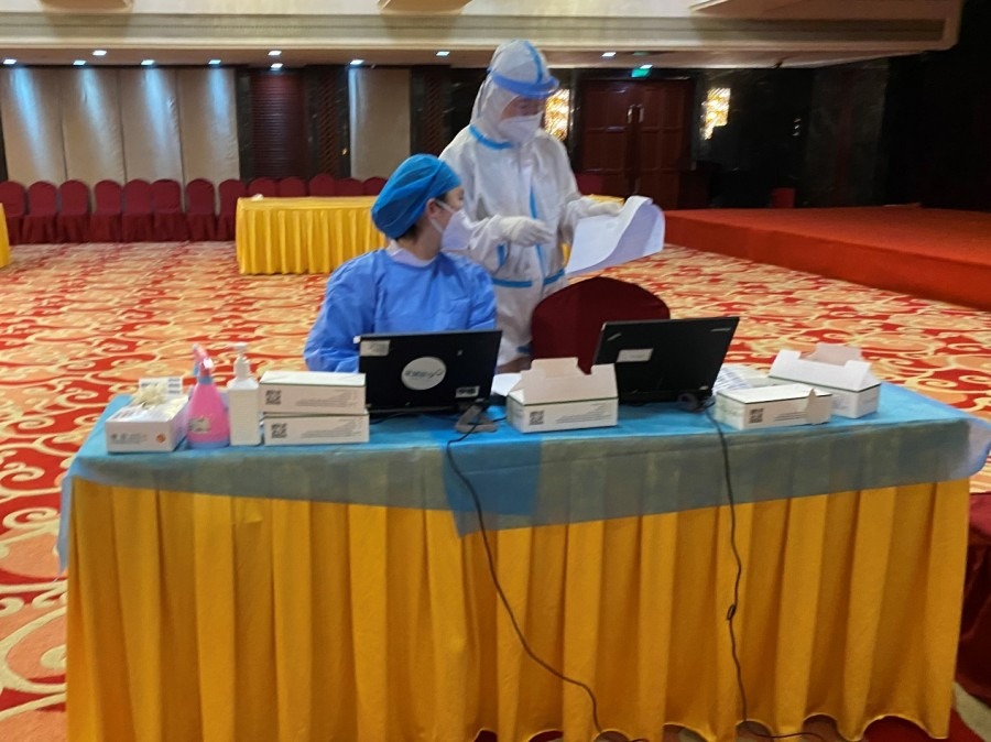 這次核酸檢測安排在酒店內進行,僅有兩名醫護人員為參會的港澳及外國記者進行檢測。