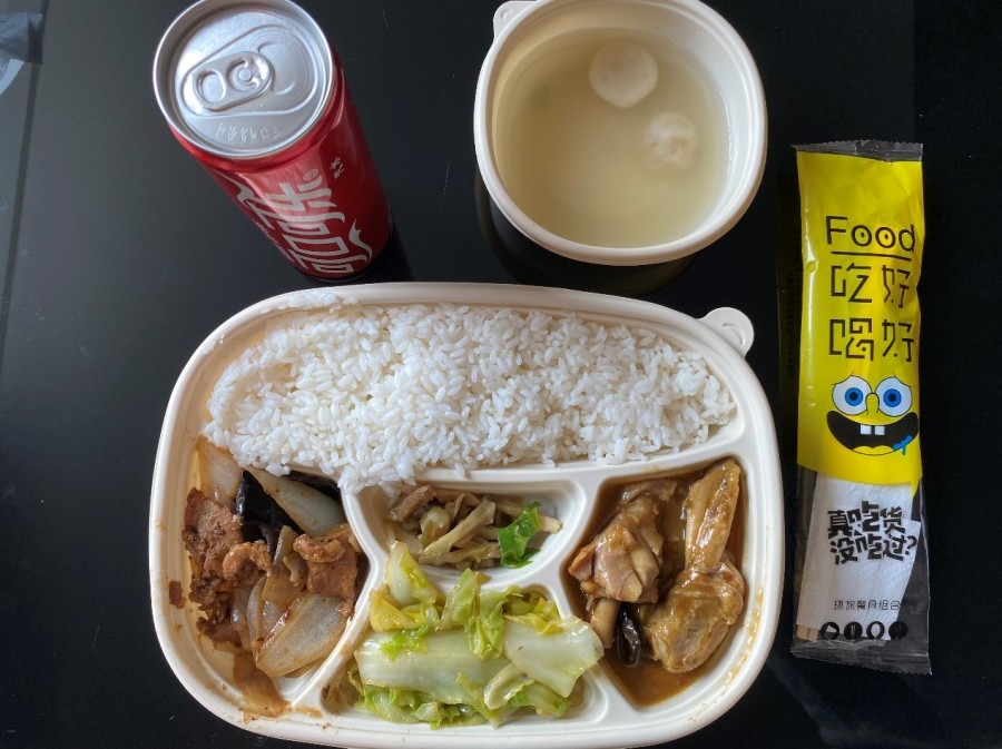 檢測結束後,記者們進入酒店大堂辦理入住,需要確認健康寶綠碼和綠色的行程碼,作短暫休息,等待六小時之後的核酸檢測結果。等待期間不得擅自離開房間,酒店為記者提供「不接觸式送餐」,餐盒放在房間門外的小桌供記者自取。