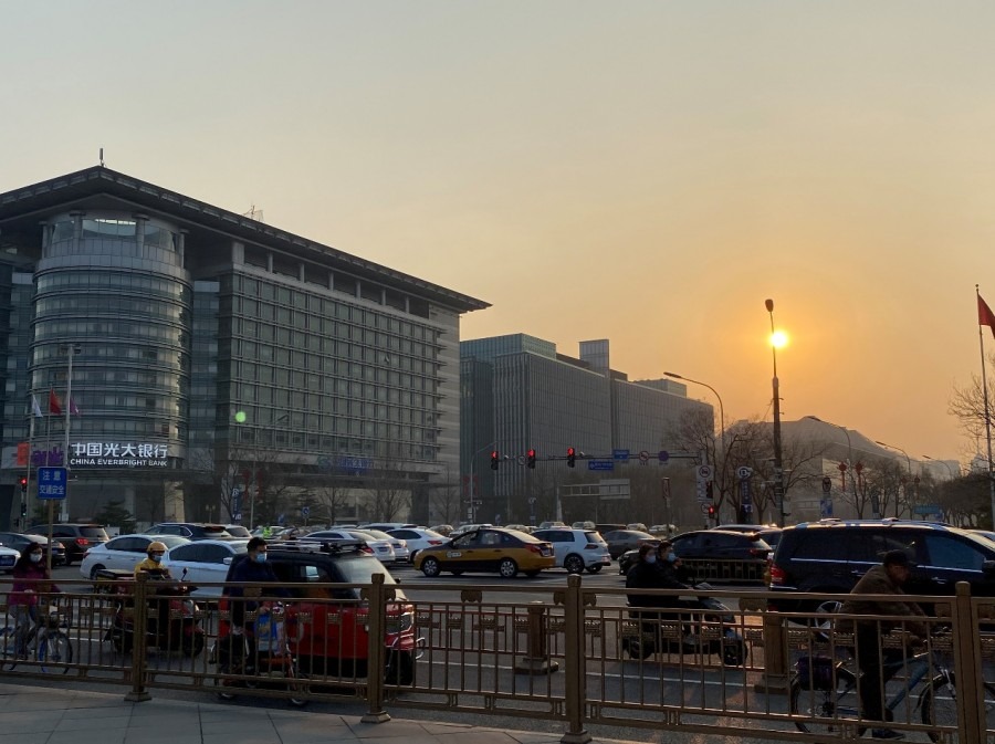 3月的北京天氣依然寒冷,早上氣溫攝氏0度以下,記者5點半到達酒店,月亮高掛天空,天色仍然全黑,太陽還沒升起。