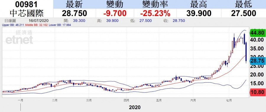 A股近年來最大規模IPO內地半導體龍頭中芯國際(00981)(滬﹕688981)周四(16日)於上海科創板首掛,開報95元人民幣較招股價高出2.46倍,收市報82.92元人民幣。中芯「回A」消息帶動中芯H股近月股價狂飆,但周三(15日)創新高後急回,周四更一度插水逾28%低見27.5元。有分析認為,中芯兩日內幾乎蒸發其由獲批科創板上市之後的全數升幅,料初步在27元有支持,中長線仍有機會重上40元。
