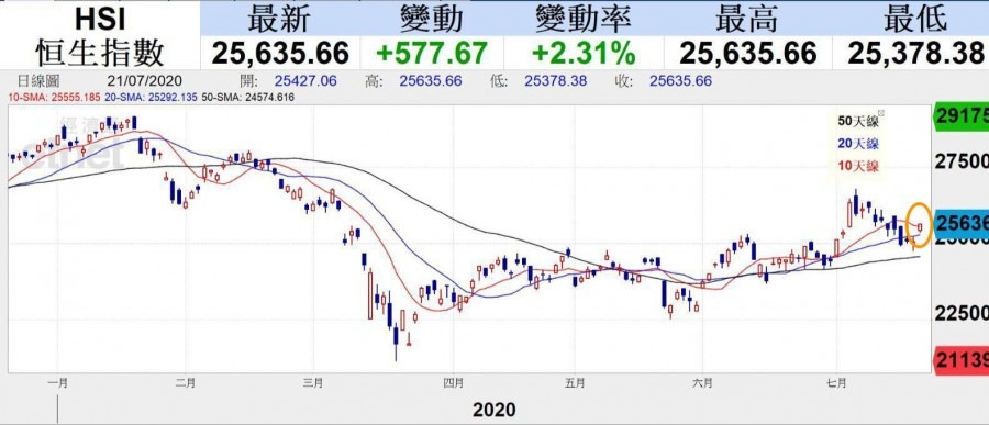港版納指沖喜 港交所破頂 恆指升577點收25635越十天線