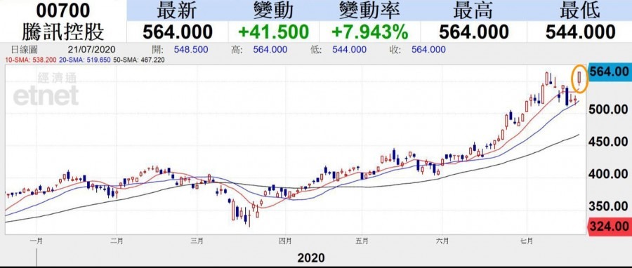 騰訊走勢圖(經濟通截圖)
