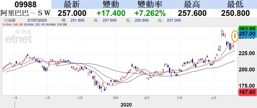 阿里巴巴走勢圖(經濟通截圖)