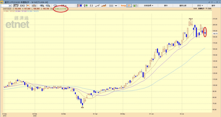美團點評走勢圖(經濟通HV2系統截圖)