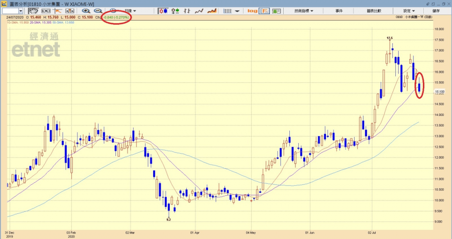 小米走勢圖(經濟通HV2系統截圖)