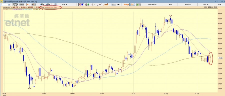 瑞聲科技(02018)升3.61%,報47.35元。(經濟通HV2系統截圖)