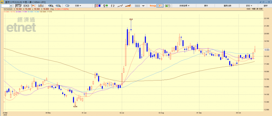 中國人壽(02628)半日升1﹒62%。(經濟通HV2系統截圖)