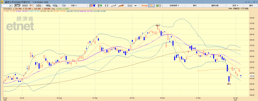 阿里巴巴(09988)走勢圖(經濟通HV2系統截圖)