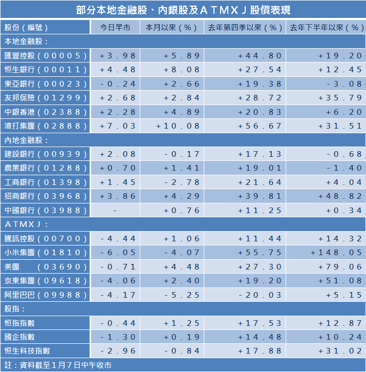譚朗蔚對本地銀行股看法較為保守,但對於短炒內銀股方面認為亦不值博,然而他表示,投資若希望買入內銀投資,可選擇招行(03968)和建行(00939),按往績走勢看,前者上望60元,投資者可望是賺息又賺價;後者股價穩定性較高,上望6.5元。