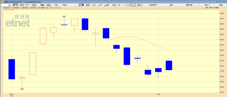 快手受惠「染藍」憧憬而受資金追捧,千里碩證券研究部經理何啟俊向《經濟通通訊社》表示,從市值、交投及行業因素分析,快手納入恒指亦屬正常,正值該股近日走勢偏淡,連日陰燭,從410元水平回調至今跌幅而超過兩成,建議可於現價(320至330元)開始分注吸納,惟近日科技股受累美債息升勢承壓,相關板塊及大市亦處於調整期,亦要待5月恒指改革前夕才會開始炒「染藍」,持貨者應作中長線投資。