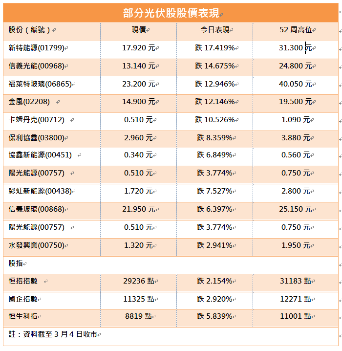 內地擬減少行業補貼 光伏股全線失色