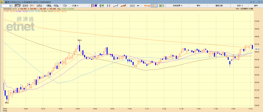 比亞迪(01211)走勢圖(經濟通HV2系統截圖)