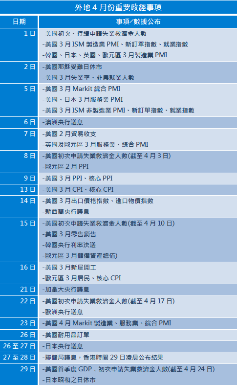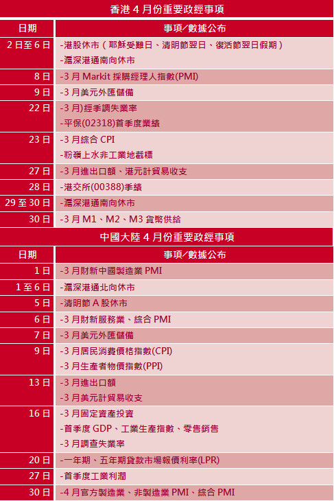 富昌證券聯席董事譚朗蔚則對《經濟通通訊社》表示,科技股現價已喘穩,料4月不會再劇跌。他又指現時已見相關被拋售股份獲資金吸納,預期大市4月走勢將較本月平穩,但短線仍會以橫行為主,難再拾較早前的破頂局勢。他判斷只要恒指未跌穿27000仍會是牛市,料4月將會於28000點至30000點區間上落,若失28000點則要有心理準備將下試去年12月低位(約27000) 。