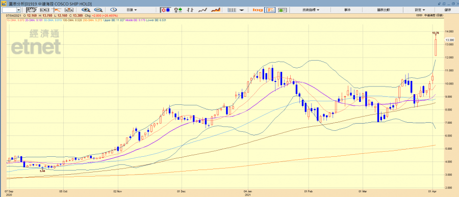 中遠海控(01919)走勢圖(經濟通HV2系統截圖)
