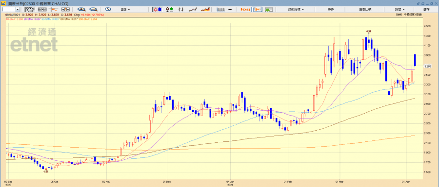 中國鋁業(02600)走勢圖(經濟通HV2系統截圖)