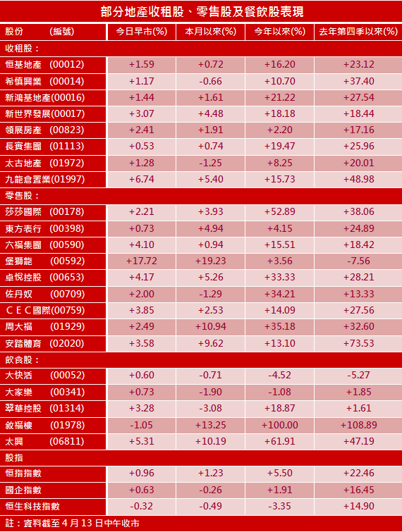 本地疫情受控,一系列的防疫措施則即將於周三(14日)屆滿,政府計劃以「疫苗氣泡」為基礎,逐步放寬社交距離措施。本港收租、零售及餐飲板塊近日明顯炒上。大中華投資策略研究學會副會長(港股)李偉傑向《經濟通通訊社》表示,市場憧憬經濟復甦,旅客訪港消費,加上港府將派發電子消費券,相關板塊可作部署。