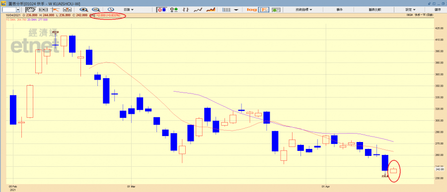 快手(01024)今日升0.83%,報242元。(經濟通HV2系統截圖)
