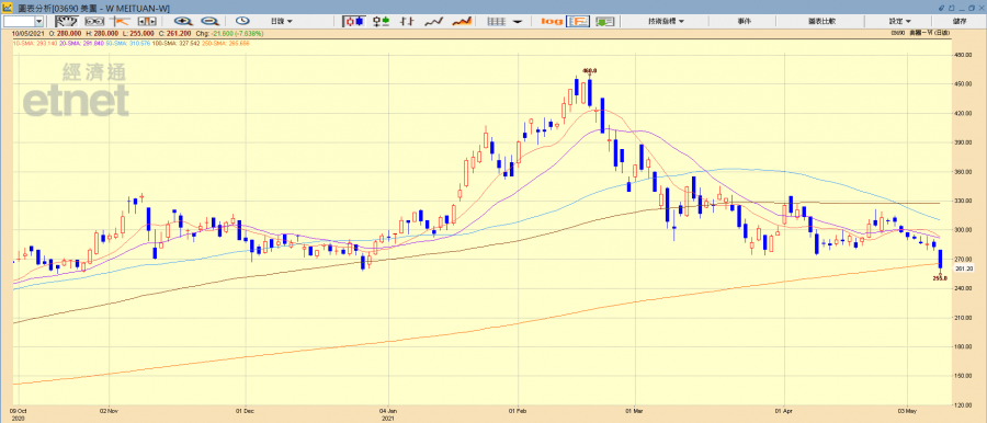 科技股今日(10日)走勢偏軟,其中美團(03690)受累CEO王興轉發唐朝詩人章碣的《焚書坑》事宜影響,今早急挫逾8%,跌穿260元水平,穿250天線,早段更曾低見255元。持股的投資者面對如此跌勢又應如何部署?好友又是否適宜現價博反彈?信誠證券聯席董事張智威則認為,美團下跌幅度有限,但現水平仍不宜撈低。