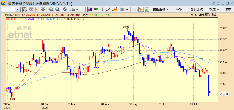 維達國際(03331)上周五(16日)公布中期業績,業績表現令市場失望, 當日股價即急跌逾一成,至本周一(19日)股價仍偏軟,今早(20日)雖公布集團行政總裁及副主席增持股份,但看來只有短暫提振作用,至下午股價再度下跌,而多間大行亦相繼調低其目標價和評級,關注其市場競爭激烈,以及紙漿價格高企帶來成本上漲壓力。