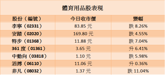 東京奧運於今晚(23日)開幕,過去兩三個星期熱炒奧運熱潮帶動體育服裝及運動鞋銷售的體育用品股全面散水,其中早前先後發盈喜的李寧(02331)和特步(01368)均曾挫逾一成,除了因見光死好消息前出貨外,瑞信亦剛發表研究報告指國產品牌相對外資品牌的優勢消失,再加上奧運前傳出有運動員確診新冠肺炎增添不明朗因素,似乎撈底還不是時候,畢竟之前熱炒多時普遍市盈率已很高,其中兩大龍頭李寧和安踏市盈率都達約50倍。