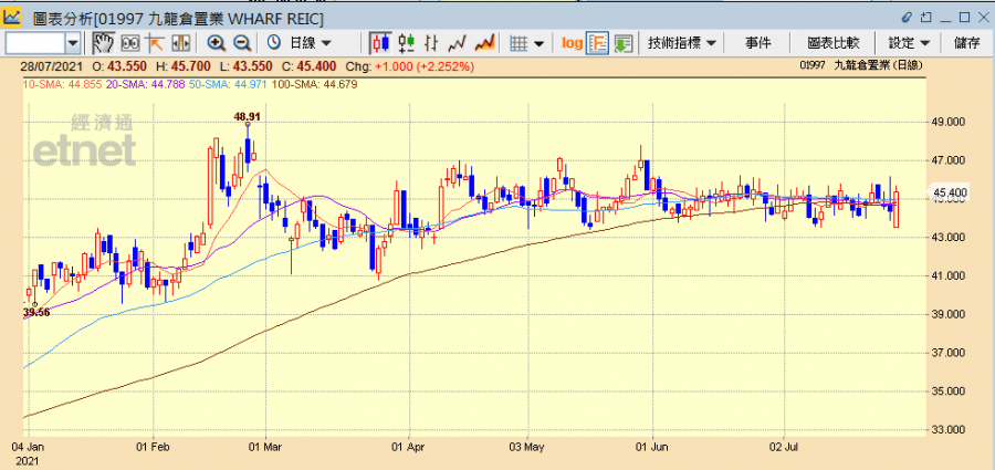 港股在過去兩個交易日均跌逾千點,在如此風高浪急的市況下,資金紛轉投防守性較強的股份,本地商場收租股無疑是較佳選擇,其中經營本港兩大「零售業指標」尖沙咀海港城及銅鑼灣時代廣場的九龍倉置業(01997)發盈喜,預期中期純利不少於25億元,雖然轉虧為盈主因乃投資物業之未變現重估虧損大幅減少,但隨著第一期電子消費券將於幾日後即8月1日發放,或可刺激包括九置等商場收租股進一步上揚。