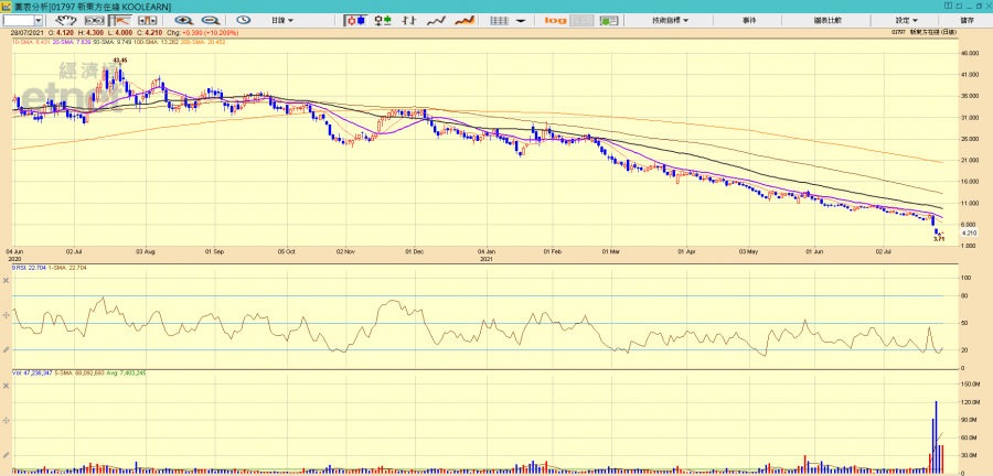 港股近日出現「小股災」,三日勁插逾2600點,然而本輪跌市早有徵兆。上周五(23日)教育板塊已先行急挫,中共中央辦公廳、國務院辦公廳出台教育「雙減」政策,觸發資金出逃,行業龍頭新東方(09901)當日暴跌四成,旗下新東方在綫(01797)亦單日插低兩成八,令市場出現恐慌。滴滴出行下架、恒大債務危機、外賣送餐指導,中國監管重拳連環出擊,當中又以教育股面臨最大風險,惟今早教育板塊終於止跌反彈,新東方更曾飆逾一成,令人憧憬見底。