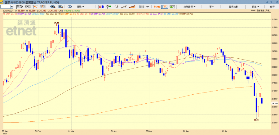 盈富基金早市跌2%報26.3元。(經濟通HV2系統載圖)