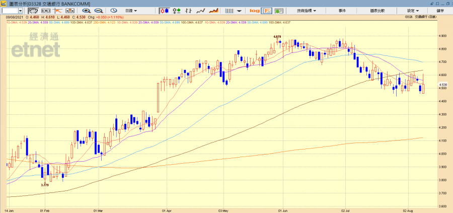 交行(03328)股價升逾1%。(經濟通HV2系統截圖)