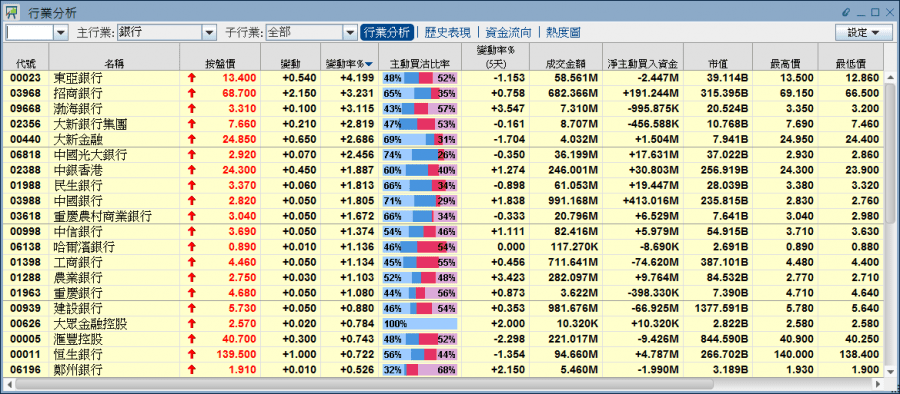個股部署上,潘鐵珊認為,由於招行正處於強勢,加上理財通推出的利好因素,股價短期大幅回調機會不大。散戶可留意,若股價失守10及20天線(約66元),可趁機分注吸納。另外,他指,中行估值低,預期周息率高達9厘,同業之中絕無僅有,且業務穩固,建議趁近期大市波動,不妨吸納中行作防守股,既可收息,又可捕捉理財通的炒作概念!