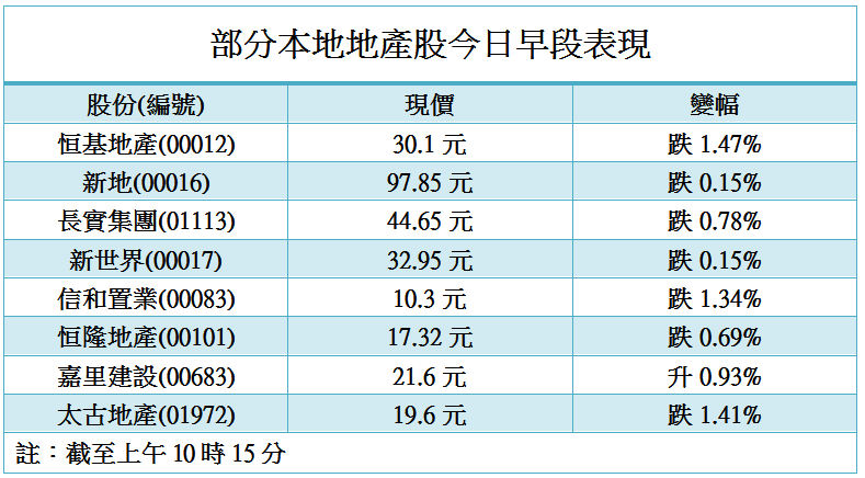 【施政報告】即將公布多項增加土地房屋措施 市場觀望地產股偏軟
