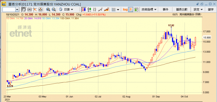 北京多地氣溫跌破0度,供暖需求大增,兗州煤業(01171)飆升一成。(兗州煤業網頁截圖)