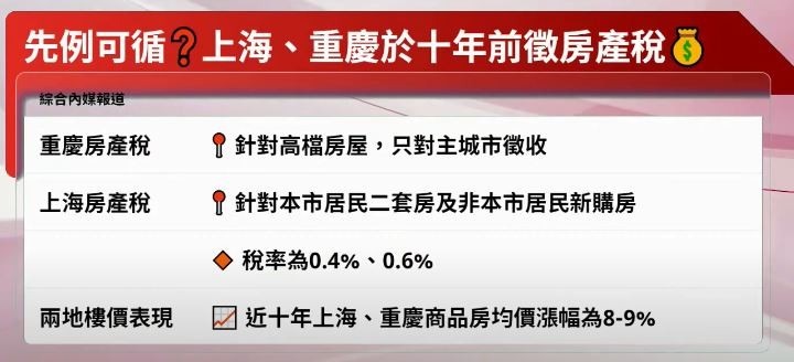 上海及重慶有徵房產稅先例,惟未能遏止樓價升勢。(《開市Good Morning》截圖)