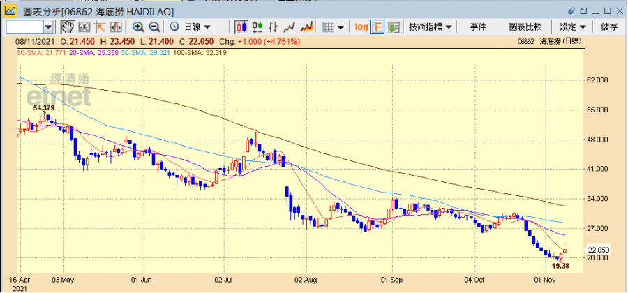 今日《開市Good Morning》請來光大新鴻基財富管理策略師溫傑分析,他指海底撈在之前公布業績時已明言會削減門店,只是沒有講明具體削減數目。其實食肆只有三個方法增加收入,其一為提升翻枱率,但食火鍋很難要人十五分鐘食完,海底撈能有3至4轉已經不錯;其二為食物單價提升,但打邊爐食材來來去去都是那些,很難提升單價;其三為開分店,大部分內地餐飲企業都是這樣做,惟近幾年開的分店較多而又蝕錢居多,而夏天也會打邊爐,冬夏淡旺季之分已不明顯,在沒辦法開源情況下節流削分店也是無可厚非。他又指近一兩年特別由於疫情,火鍋店受到很大衝擊,市盈率又相當高,存在下跌空間,所以必須做好風險管理,上周跌至20元有反彈,希望是底部,而純看圖表初步阻力在26元左右,再上為34元,但料再升空間有限,到時就應考慮要否止蝕或換馬。